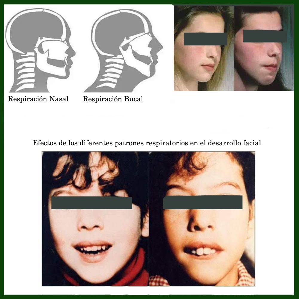 El problema de que un niño respire con la boca abierta es que se altera el equilibrio en la dinámica respiratoria. En condiciones normales utilizamos el espacio de la nariz para respirar y la cavidad de la boca para hablar y comer. Cuando esto no ocurre adecuadamente se tiende a complementar la respiración con la boca, perdiendo el equilibrio mencionado y alterando las funciones normales de la boca, nariz y garganta: respirar, masticar, hablar y tragar. La cara, su estructura ósea y muscular, se desarrolla conforme la usamos. Bajo la piel, los músculos nos ayudan con nuestras expresiones faciales: a sonreír, hacer muecas, masticar y también a hablar y respirar. Los músculos que se mueven cuando respiramos estimulan y dirigen el crecimiento de los huesos de la cara, dientes y paladar. Por eso, cuando la dinámica respiratoria es anormal, se afectan múltiples funciones.